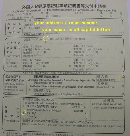 you have to get a certificate of alien registration file (300 yen, sept.'04).