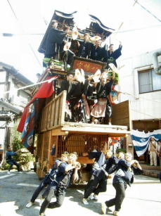 Please check the photos below. Festival of Asuke Hachiman-sha (shrine) Four floats (6m-high) assemble from the four areas in the town to the shrine. we can also see the matchlock performance. |