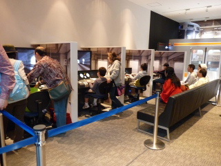 Result of the draw is displayed on the board. at Event Zone (Event Hiroba) 15 minutes before the each starting time. If you win, show your numbered stub at the information desk at the Event Zone (Event Hiroba), and you can purchase the tickets. (You can not chose the simulator usage time) Then, wait in line at each simulator room.
