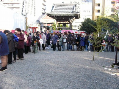| Volunteers hand a rice cake to the visitors | Long line | Pray forthe safety of their families and good gealth. |